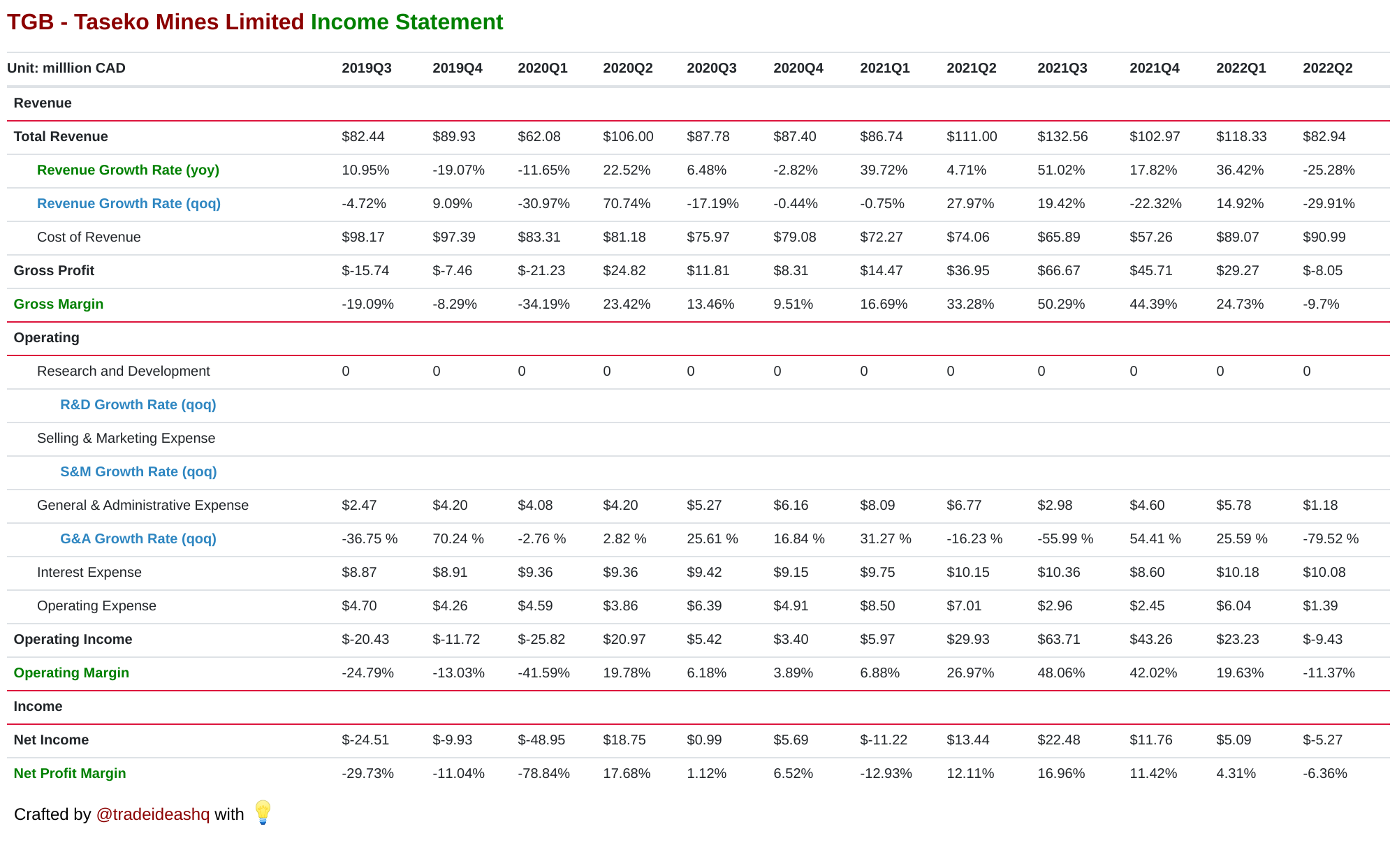 Rooms Rankings Earnings Newsletters Shop. Lets briefly compare Taseko Mines Limited TGB stock to its peers. Stock information by Barrons.